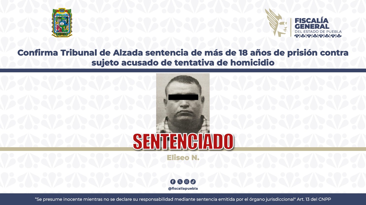 La Fiscalía General del Estado informa que, a partir de la aportación de datos de prueba, se obtuvo la vinculación a proceso y la medida cautelar de prisión preventiva oficiosa en contra de Miguel N., de 32 años de edad, por su probable responsabilidad en el delito de feminicidio en grado de tentativa, homicidio en grado de tentativa y lesiones calificadas.